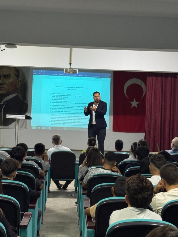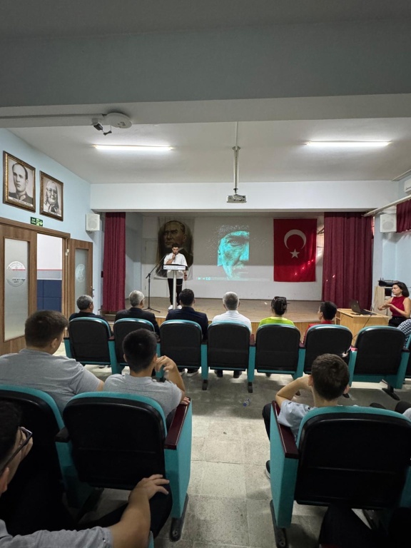 2025-2026 Eğitim-Öğretim yılı açılış törenimizi gerçekleştirdik. Okul Müdür Yardımcımız Yener Lazoğlu'nun açılış konuşmasıyla başlayan törenimiz, Rehber Öğretmenimiz Hayriye Gegeoğlu'nun Rehberlik Servisi tanıtım sunumuyla devam etti. Okul birincisi Yiyecek İçecek Hizmetleri alanı öğrencimiz Yasin Coşkun yeni başlayan arkadaşlarına ithafen güzel bir konuşma yaptı. Ardından Bakanlığımızca ilk ders olarak önerilen Her Çocuk Bir Fidan videosu izlendi. Törenimizi hazırlayan Türk Dili ve Edebiyatı öğretmenimiz Çiğdem Ergüleç ve 10.sınıf kuaförlük öğrencimiz Simay Yıldız' a teşekkür ederiz. Yeni eğitim-öğretim yılımız tüm eğitim camiamıza hayırlı olsun.